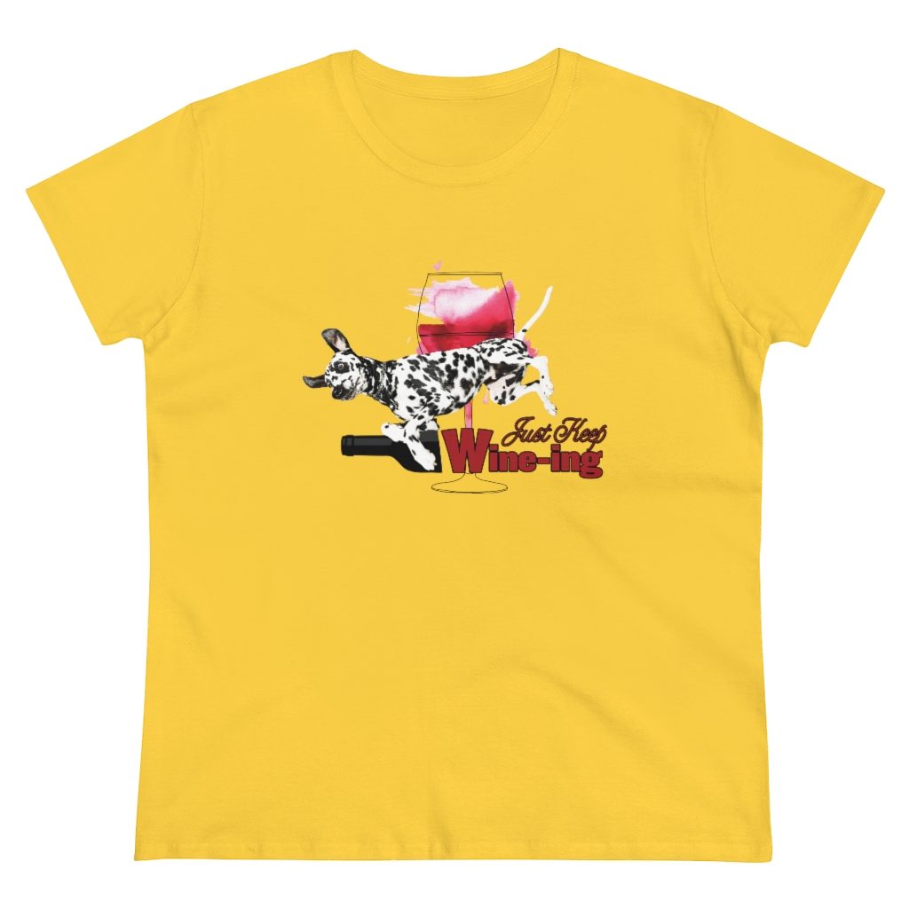 T-Shirt Front: “Just Keep Wine-ing” SHOP OUR T-SHIRTS HERE! |